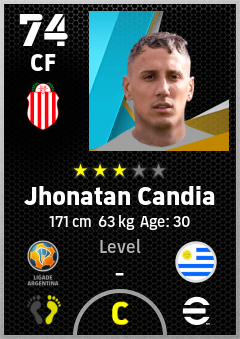 . Jhonatan Candia is a Center Forward footballer from Uruguay who plays for Barracas Rb in eFootball 2026.