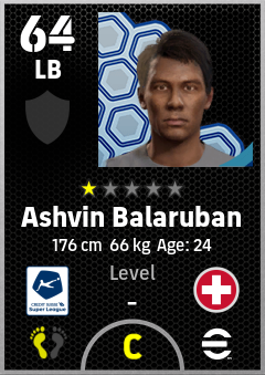 . Ashvin Balaruban is a Left Back footballer from Switzerland who plays for Thun Rw in eFootball 2026.