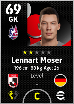 . Lennart Moser is a Goalkeeper footballer from Germany who plays for Fagiano Okayama in eFootball 2026.