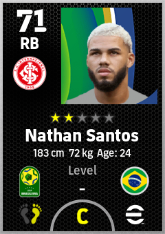 . Nathan Santos is a Right Back footballer from Brazil who plays for Sc Internacional in eFootball 2026.