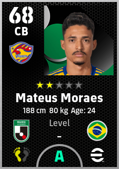 . Mateus Moraes is a Center Back footballer from Brazil who plays for Vegalta Sendai in eFootball 2026.