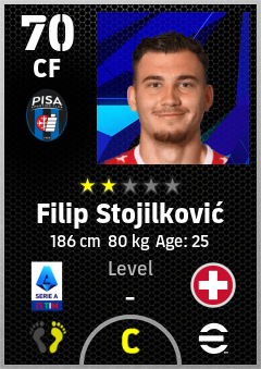 . Filip Stojilković is a Center Forward footballer from Switzerland who plays for Pisa Sporting Club in eFootball 2026.