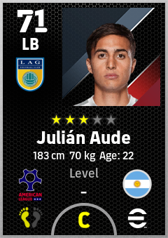 . Julián Aude is a Left Back footballer from Argentina who plays for Los Angeles Wby in eFootball 2026.