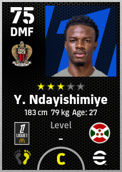 . Y. Ndayishimiye is a Defensive Midfielder footballer from Burundi who plays for Ogc Nice in eFootball 2026.