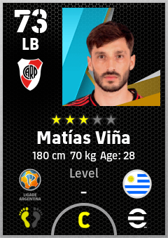 . Matías Viña is a Left Back footballer from Uruguay who plays for Ca River Plate in eFootball 2026.