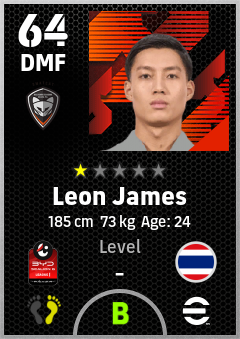 . Leon James is a Defensive Midfielder footballer from Thailand who plays for Nakhonratchasima Fc in eFootball 2026.