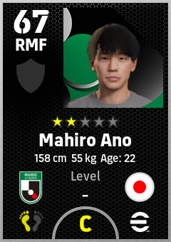 . Mahiro Ano is a Right Midfielder footballer from Japan who plays for Tegevajaro Miyazaki in eFootball 2026.