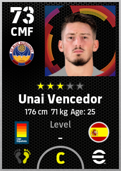 . Unai Vencedor is a Center Midfielder footballer from Spain who plays for Levante Ra in eFootball 2026.