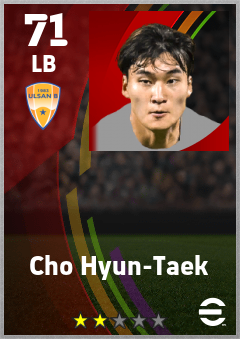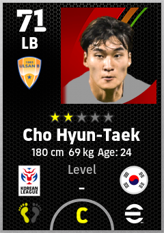 . Cho Hyun-Taek is a Left Back footballer from Korea Republic who plays for Ulsan B in eFootball 2026.