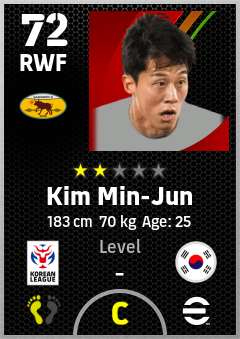 . Kim Min-Jun is a Right Wing Forward footballer from Korea Republic who plays for Gangwon O in eFootball 2026.