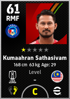 . Kumaahran Sathasivam is a Right Midfielder footballer from Malaysia who plays for Sabah Fc in eFootball 2026.