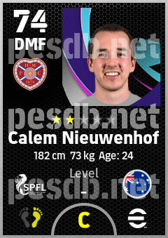 . Calem Nieuwenhof is a Defensive Midfielder footballer from Australia who plays for Heart Of Midlothian Fc in eFootball 2026.