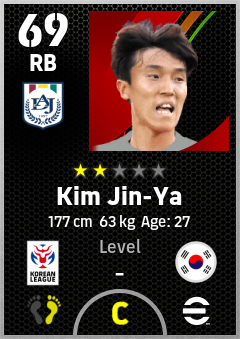 . Kim Jin-Ya is a Right Back footballer from Korea Republic who plays for Daejeon Rgw in eFootball 2026.