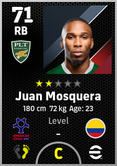 . Juan Mosquera is a Right Back footballer from Colombia who plays for Portland Gw in eFootball 2026.