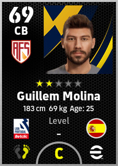 . Guillem Molina is a Center Back footballer from Spain who plays for Avs Futebol in eFootball 2026.