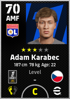 . Adam Karabec is a Attacking Midfielder footballer from Czechia who plays for Olympique Lyonnais in eFootball 2026.