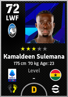 . Kamaldeen Sulemana is a Left Wing Forward footballer from Ghana who plays for Atalanta Bc in eFootball 2026.
