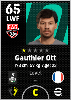 . Gauthier Ott is a Left Wing Forward footballer from France who plays for En Avant Guingamp in eFootball 2026.