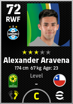 . Alexander Aravena is a Right Wing Forward footballer from Chile who plays for Grêmio Fbpa in eFootball 2026.