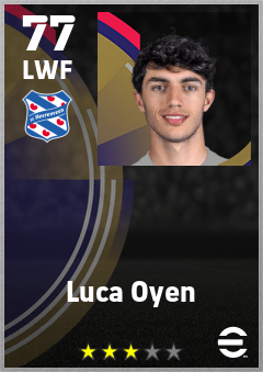 . Luca Oyen is a Left Wing Forward footballer from Belgium who plays for Sc Heerenveen in eFootball 2026.