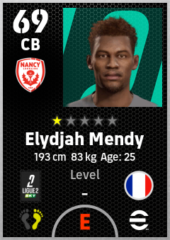 . Elydjah Mendy is a Center Back footballer from France who plays for As Nancy-Lorraine in eFootball 2026.