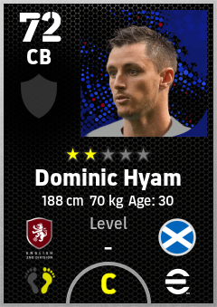 . Dominic Hyam is a Center Back footballer from Scotland who plays for Wrexham Rw in eFootball 2026.