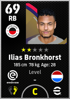 . Ilias Bronkhorst is a Right Back footballer from Netherlands who plays for Excelsior Rotterdam in eFootball 2026.