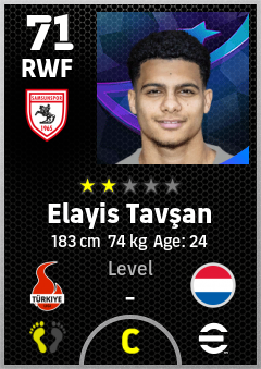 . Elayis Tavşan is a Right Wing Forward footballer from Netherlands who plays for Samsunspor in eFootball 2026.
