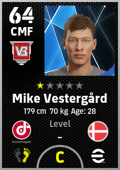 . Mike Vestergård is a Center Midfielder footballer from Denmark who plays for Vejle Rh in eFootball 2026.