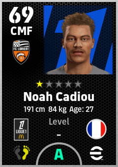 . Noah Cadiou is a Center Midfielder footballer from France who plays for Fc Lorient in eFootball 2026.