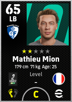 . Mathieu Mion is a Left Back footballer from France who plays for Grenoble Foot 38 in eFootball 2026.