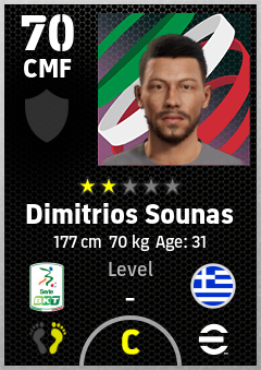 . Dimitrios Sounas is a Center Midfielder footballer from Greece who plays for Avellino Bv in eFootball 2026.