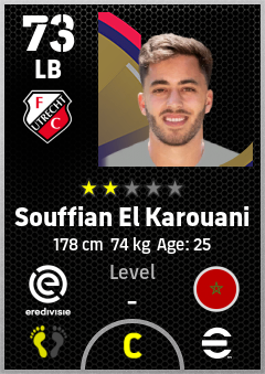 . Souffian El Karouani is a Left Back footballer from Morocco who plays for Fc Utrecht in eFootball 2026.
