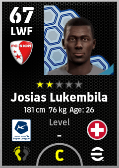 . Josias Lukembila is a Left Wing Forward footballer from Switzerland who plays for Sion Rw in eFootball 2026.