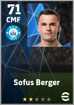 . Sofus Berger is a Center Midfielder footballer from Denmark who plays for Silkeborg Rh in eFootball 2026.