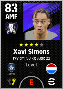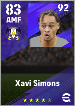 . Xavi Simons is a Attacking Midfielder footballer from Netherlands who plays for Tottenham Wb in eFootball 2026.
