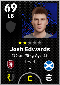 . Josh Edwards is a Left Back footballer from Scotland who plays for Charlton Rw in eFootball 2026.