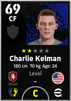 . Charlie Kelman is a Center Forward footballer from United States who plays for Charlton Rw in eFootball 2026.