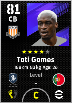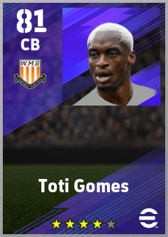 . Toti Gomes is a Center Back footballer from Portugal who plays for Wolverhampton Yb in eFootball 2026.
