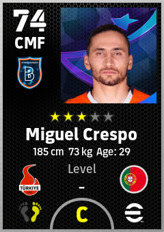 . Miguel Crespo is a Center Midfielder footballer from Portugal who plays for Rams Başakşehir Fk in eFootball 2026.