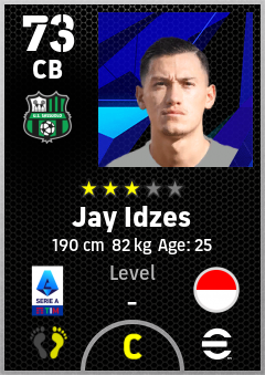 . Jay Idzes is a Center Back footballer from Indonesia who plays for Sassuolo Nv in eFootball 2026.