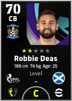 . Robbie Deas is a Center Back footballer from Scotland who plays for Kilmarnock Fc in eFootball 2026.