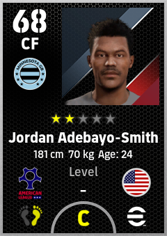 . Jordan Adebayo-Smith is a Center Forward footballer from United States who plays for Minnesota Gb in eFootball 2026.