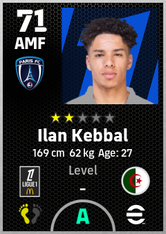 . Ilan Kebbal is a Attacking Midfielder footballer from Algeria who plays for Paris Fc in eFootball 2026.