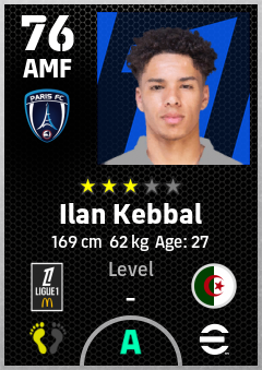 . Ilan Kebbal is a Attacking Midfielder footballer from Algeria who plays for Paris Fc in eFootball 2026.