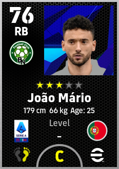. João Mário is a Right Back footballer from Portugal who plays for Bologna Rb in eFootball 2026.