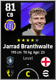 . Jarrad Branthwaite is a Center Back footballer from England who plays for Everton B in eFootball 2026.