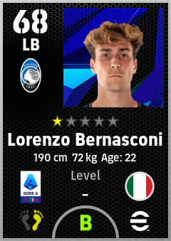 . Lorenzo Bernasconi is a Left Back footballer from Italy who plays for Atalanta Bc in eFootball 2026.