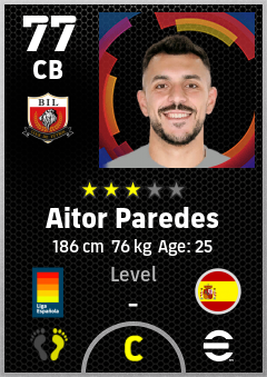 . Aitor Paredes is a Center Back footballer from Spain who plays for Bilbao Br in eFootball 2026.