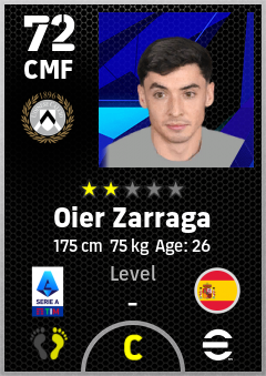 . Oier Zarraga is a Center Midfielder footballer from Spain who plays for Udinese Calcio in eFootball 2026.